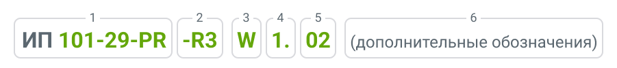 1 – Обозначение типа извещателя: ИП 101-29-PR – извещатель пожарный тепловой максимально-дифференциальный.