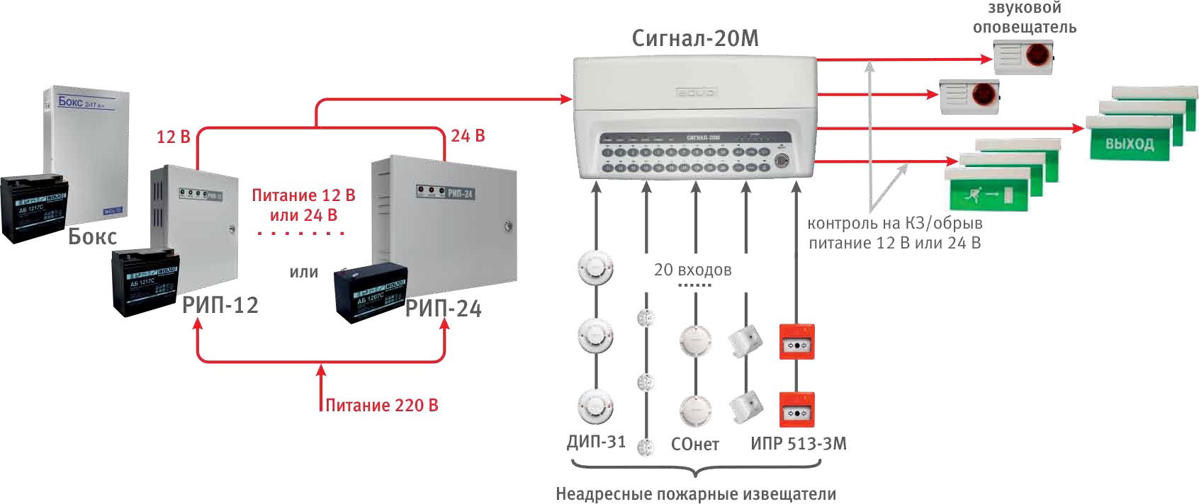 Для построения неадресной пожарной сигнализации в интегрированной системе охраны «Орион» производства компании ЗАО НВП «Болид» можно применить следующие приёмно-контрольные приборы с контролем радиальных шлейфов сигнализации: